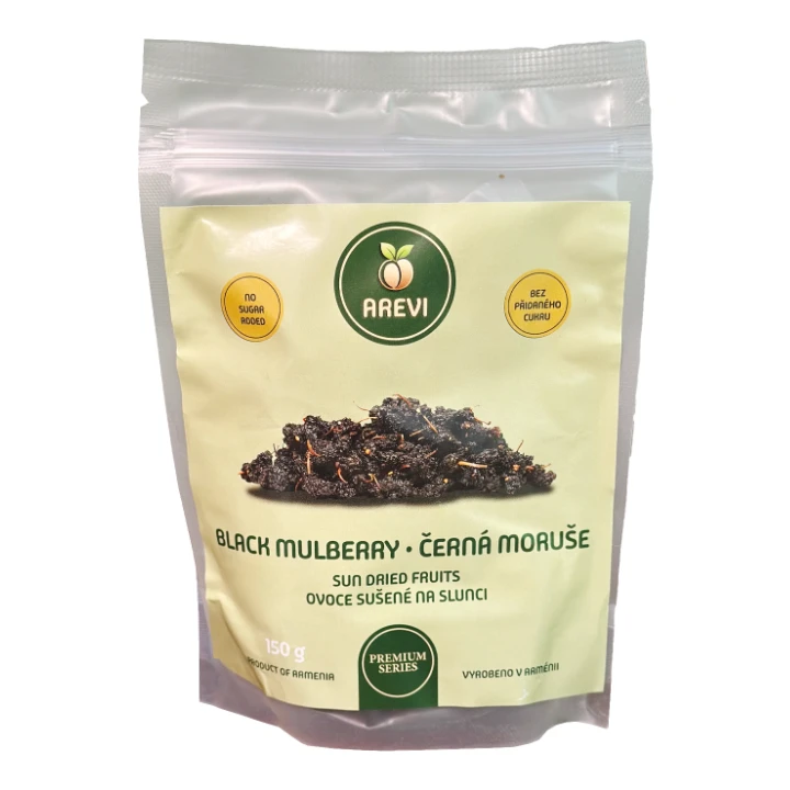 Na slunci sušené šťavnaté moruše, bez přidaného cukru, plné vitamínů C a K, železa, vápníku, fosforu, hořčíku, draslíku a vlákniny.