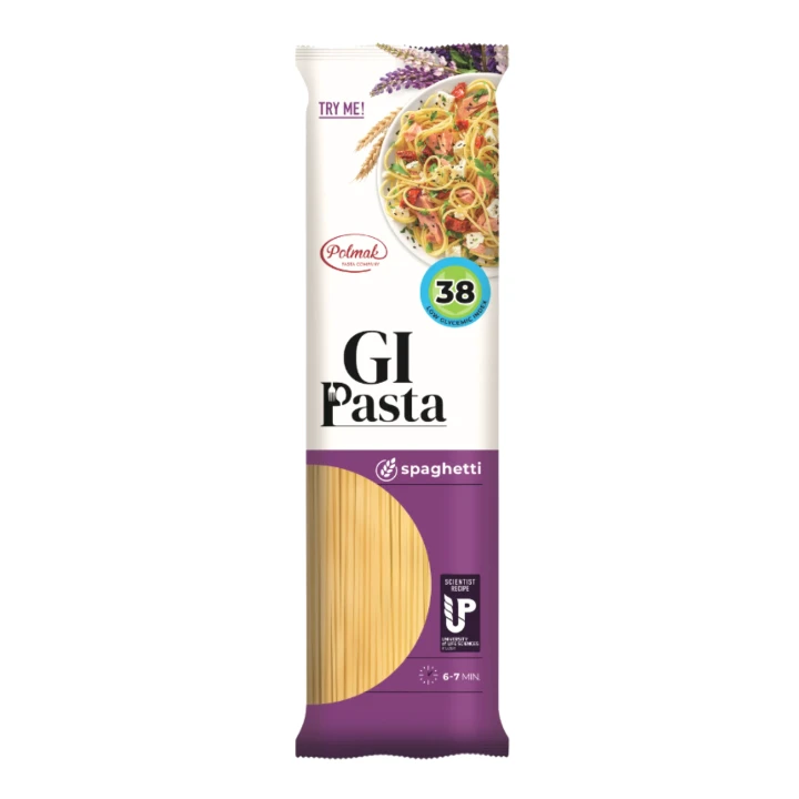 Spaghetti s nízkým glykemickým indexem GI 38 a glykemickou zátěží GL 9,3 jsou zdravější alternativou klasických těstovin pro svůj vysoký obsah bílkovin, vysoký obsah vlákniny a snížený obsah sacharidů.