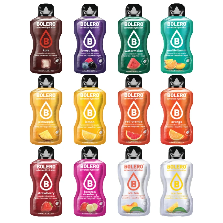 S Bolero 12 příchutí máte svobodu objevovat každý den novou příchuť. Od ovocných variant, jako jsou lesní plody a multivitamin, až po bestsellery, jako je ledový čaj broskev a citron - najdete tu vše. Naše nápojové prášky jsou bez cukru, přesto vám nabídnou plnou chuť ovoce bez zbytečných kalorií.