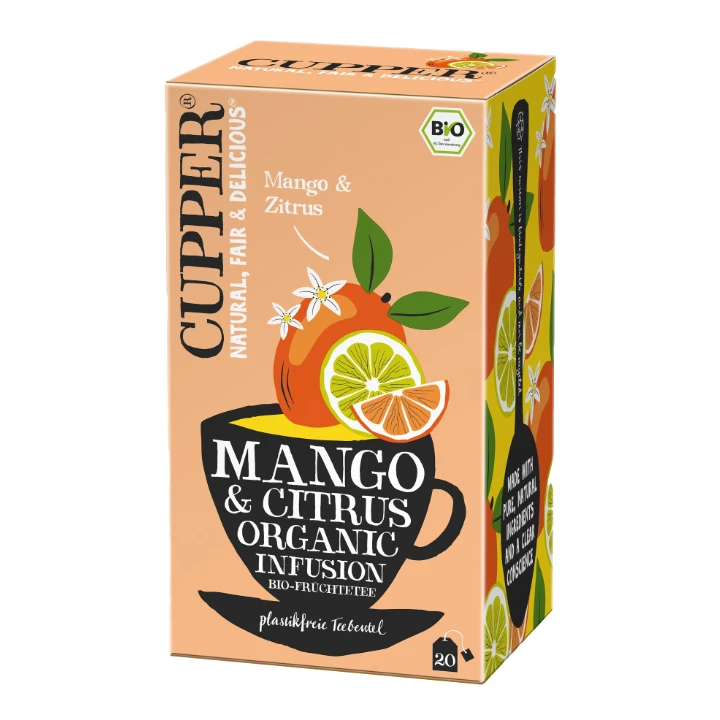 Prémiový ovocný čaj s pomerančovou a limetkovou kůrou a mangovou příchutí, v bio kvalitě.