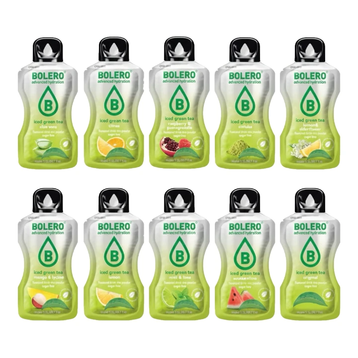 Svěžest a chuť – vše v jedné krabičce. Objevte Bolero ledový zelený čaj, který spojuje deset osvěžujících příchutí zeleného čaje s jemnými ovocnými tóny. Každý sáček obsahuje extrakt ze zeleného čaje doplněný o vitamín C – a to vše bez cukru. Stačí rozmíchat ve vodě a vychutnat si ledově osvěžující nápoj kdykoli během dne.
