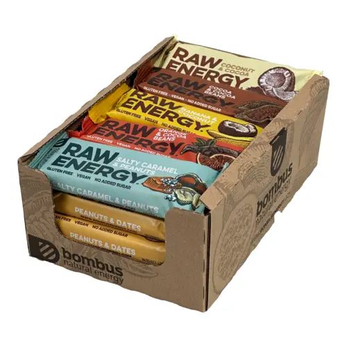 Složení: Datle 60%, arašídy 38,2%, karamelové aroma 0,8%, sůl 1%.