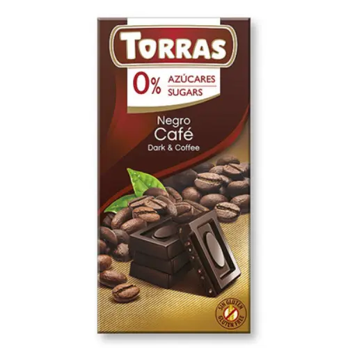 Hořká čokoláda s kávou, bez přidaného cukru.