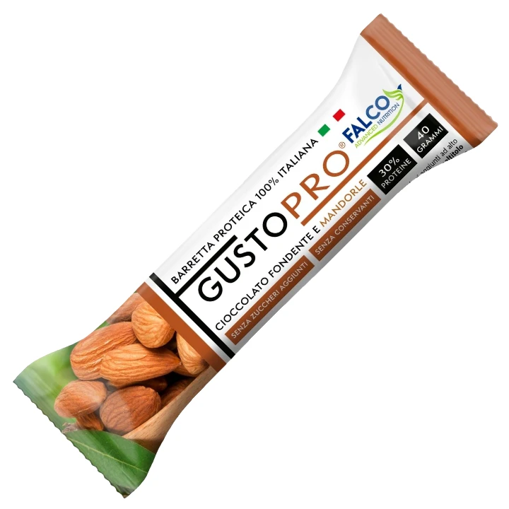 Unikátní křupavá proteinová tyčinka z prémiové hořké čokolády s mandlemi, která se nerozpustí. Obsahuje 30% proteinu. Složením a velikostí vhodná jako odpolední svačinka.