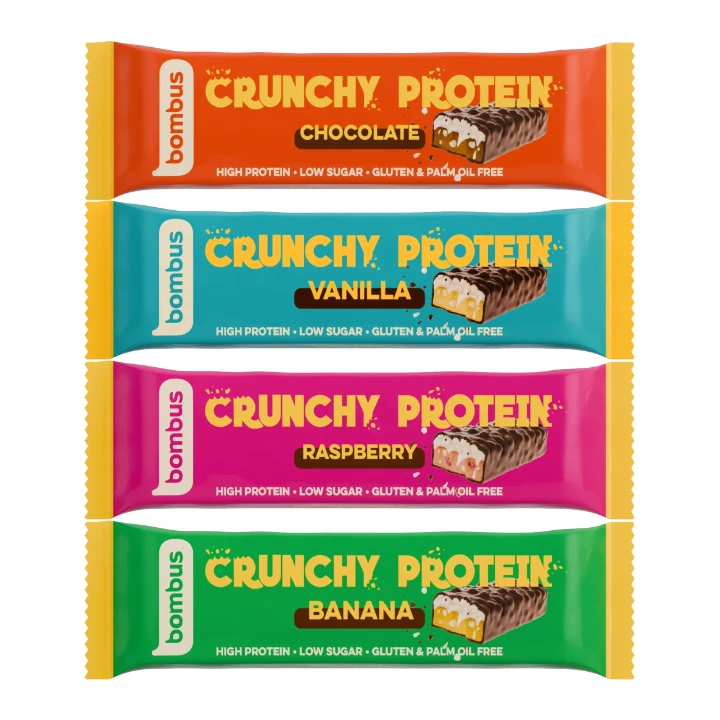 Neznáte příchutě Bombus Crunchy Protein? Zkuste testovací mix 4 různých proteinových tyčinek s extra křupavostí.