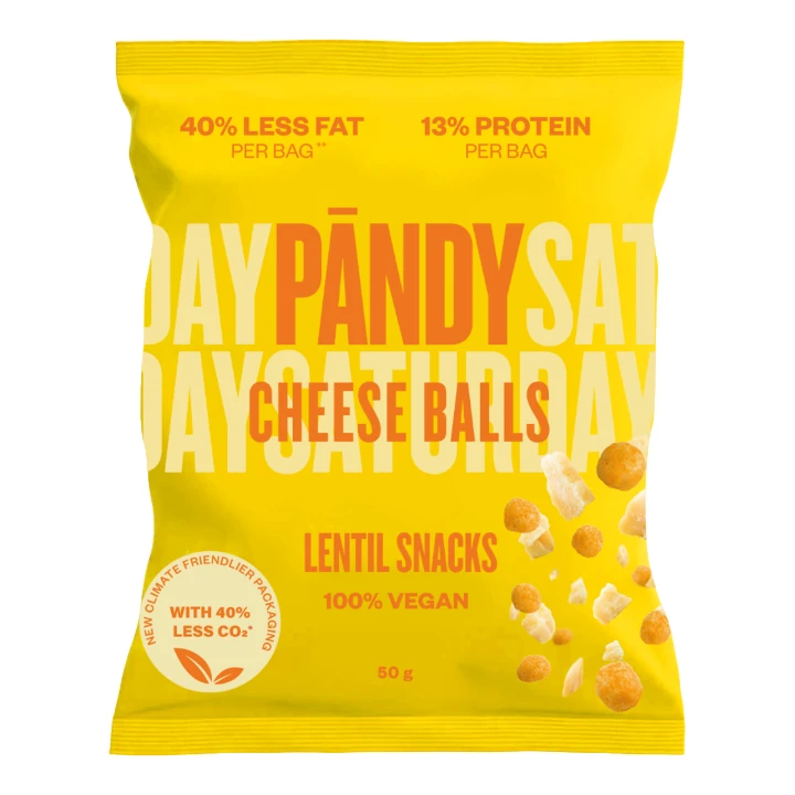 Čočkové kuličky s příchutí sýra, o 40% méně tuku, 13% protein, vegan.