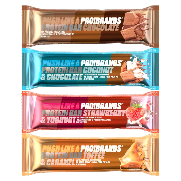 Neznáte příchutě Pro!Brands? Zkuste testovací mix 4 různých proteinových tyčinek s obsahem 38% proteinu.